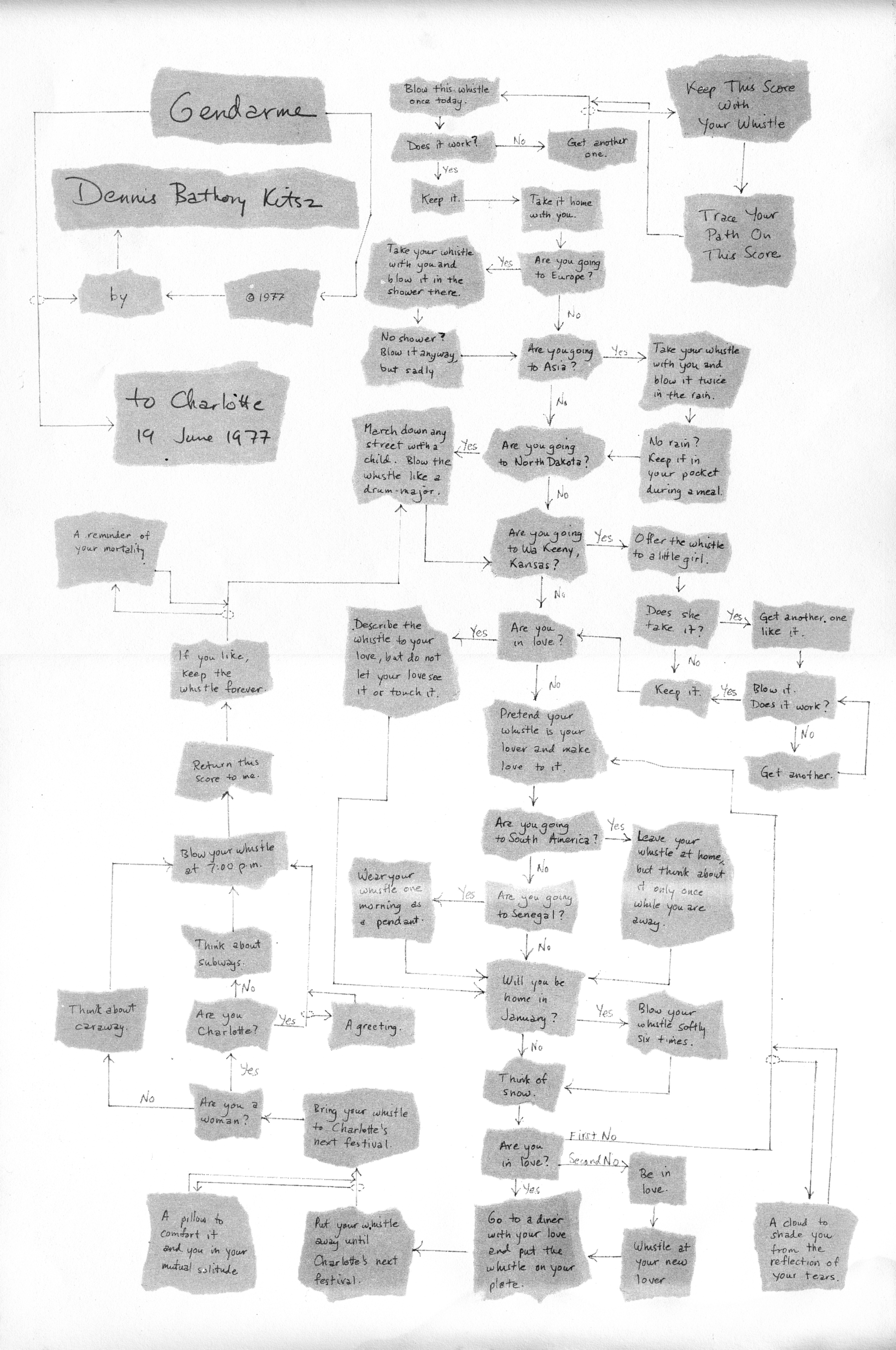 The performance used 50 numbered bakery boxes containing a whistle and this score.
